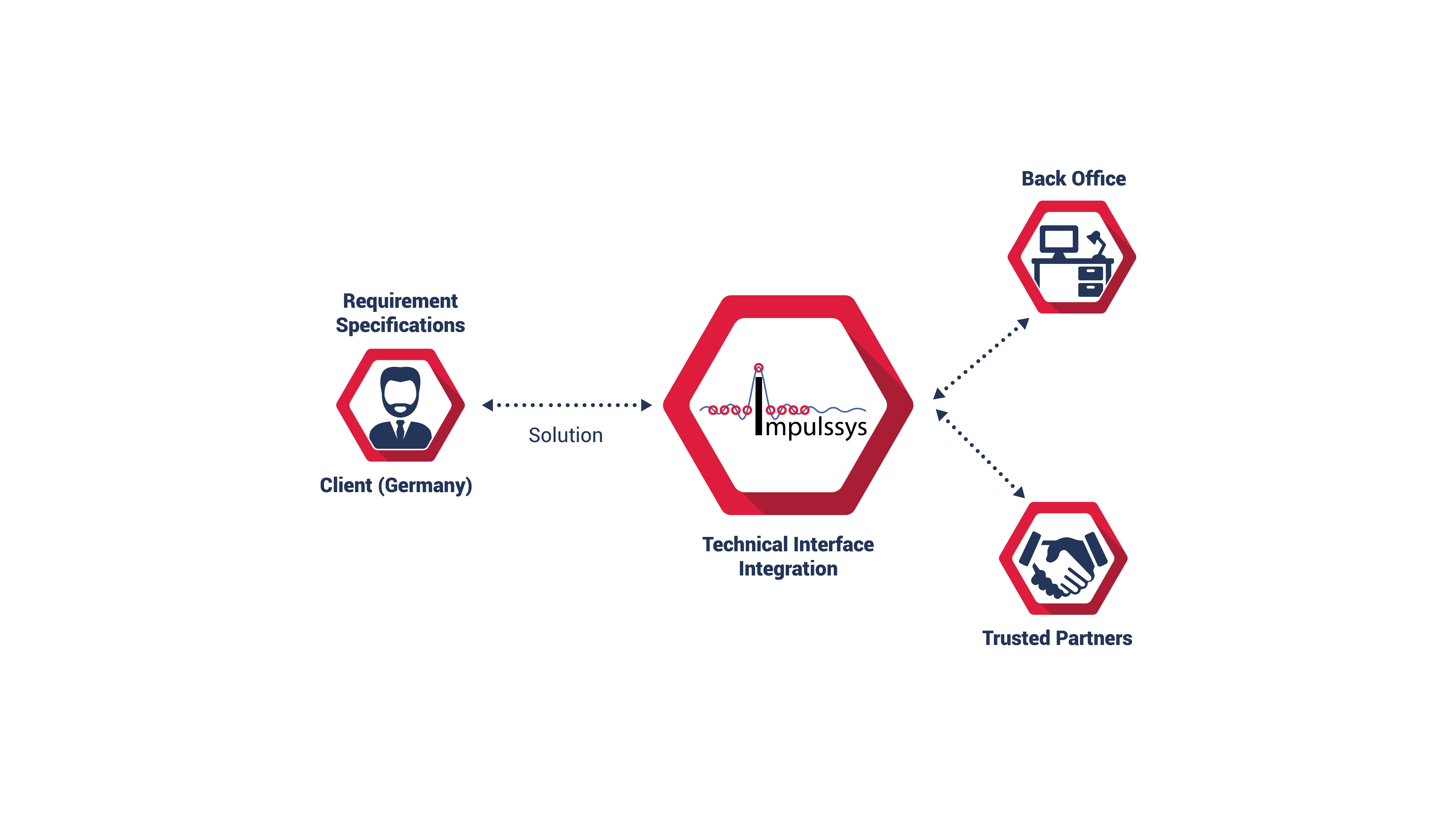 At Impulssys GmbH, we offer a technical interface, registered in Germany, physically in proximity to our clients in the EU which makes communication easier and reduces lag times and misunderstandings. We have a dedicated back office as well as a panel of Trusted Partners consisting of technology experts which increase our capacity to deliver quality projects on time. Our panel consists of experts in Software Development, Application development, Embedded Systems and Machine learning.